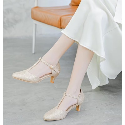 DADAWEN Women's Closed Toe T-Strap Buckle Low Heel Party Bridal Wedding Dress Pump Shoes