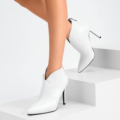 Greatonu Women's High Heel Boots Sexy Stiletto V Shape Pointy Toe Ankle Booties