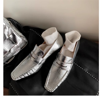 Silver square toe soft sole shallow mouth Mary Jane shoes for women 2024 new spring and summer one-strap retro French flat shoes