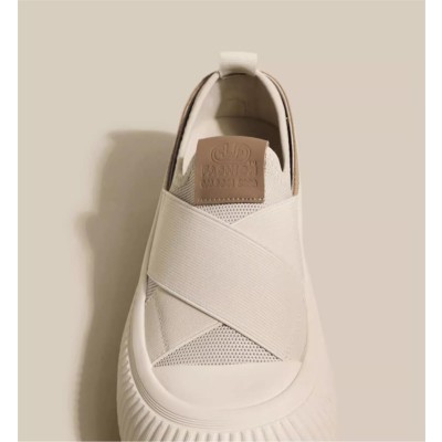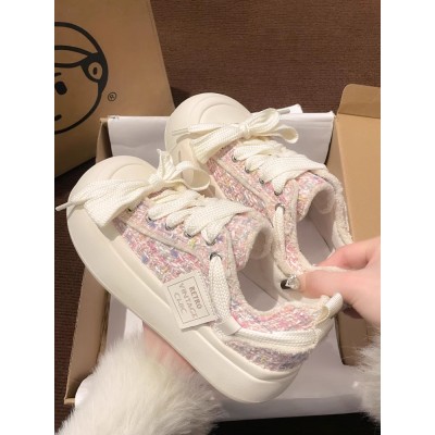 White shoes for women, high-end, versatile, thick-soled, large-toe bread shoes