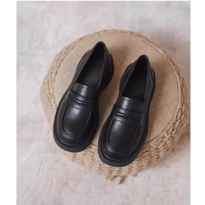 Black Loafers Women's Shoes 2024 New Spring and Autumn Slip-On British Style Small Leather Shoes