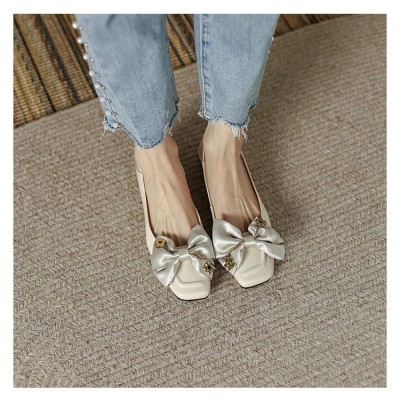 Temperament original one shoe, two wear ~ genuine leather square toe bow single shoes for women