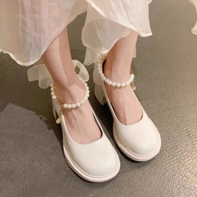 French thick heel Mary Jane women's shoes 2024 new spring and summer fairy style small leather shoes white with skirt high heels