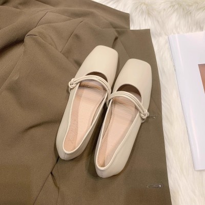 Internet celebrity stiletto square toe second-hand sheepskin shoes, versatile fashionable small leather shoes