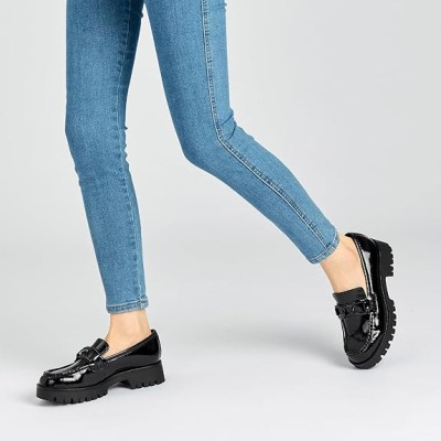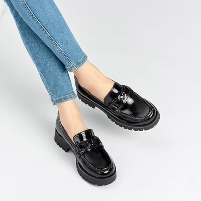 Womens Loafers Chunky Heel Loafers Shoes Comfort Slip On Office Work Shoes