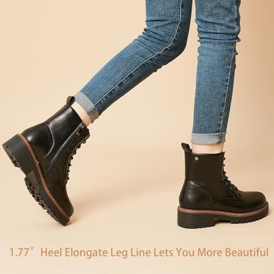 Womens Boots Ladies Casual Water-Resistant Boots Fashion Round Toe Lug Sole Ankle Boots