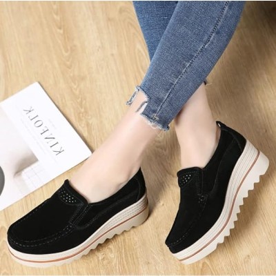 Duberess Women's Slip-on Wedge Moccasin Loafers Casual Walking Shoes Trainers