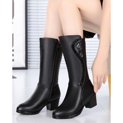 Duberess Women's Wool Lined Warm Winter Anti Slip Zip Chunky Heel Fashion Classic Mid-calf Boots