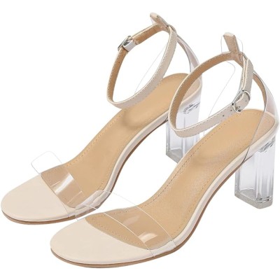 Duberess Women's Open Toe Ankle Strap Clear Heels Sandals Chunky Heel Party Dress Pumps